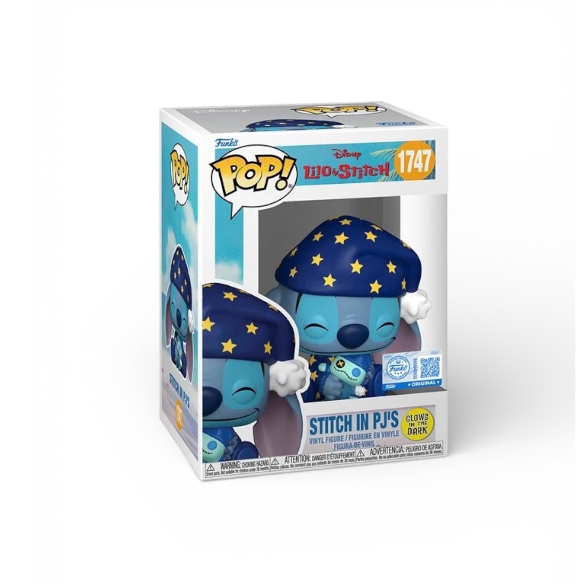 This Lilo & Stitch Stitch in PJs Glow-in-the-Dark Funko Pop! Vinyl Figure #1747 - Specialty measures approximately 3 1/2-inches tall and comes packaged in a window display box.