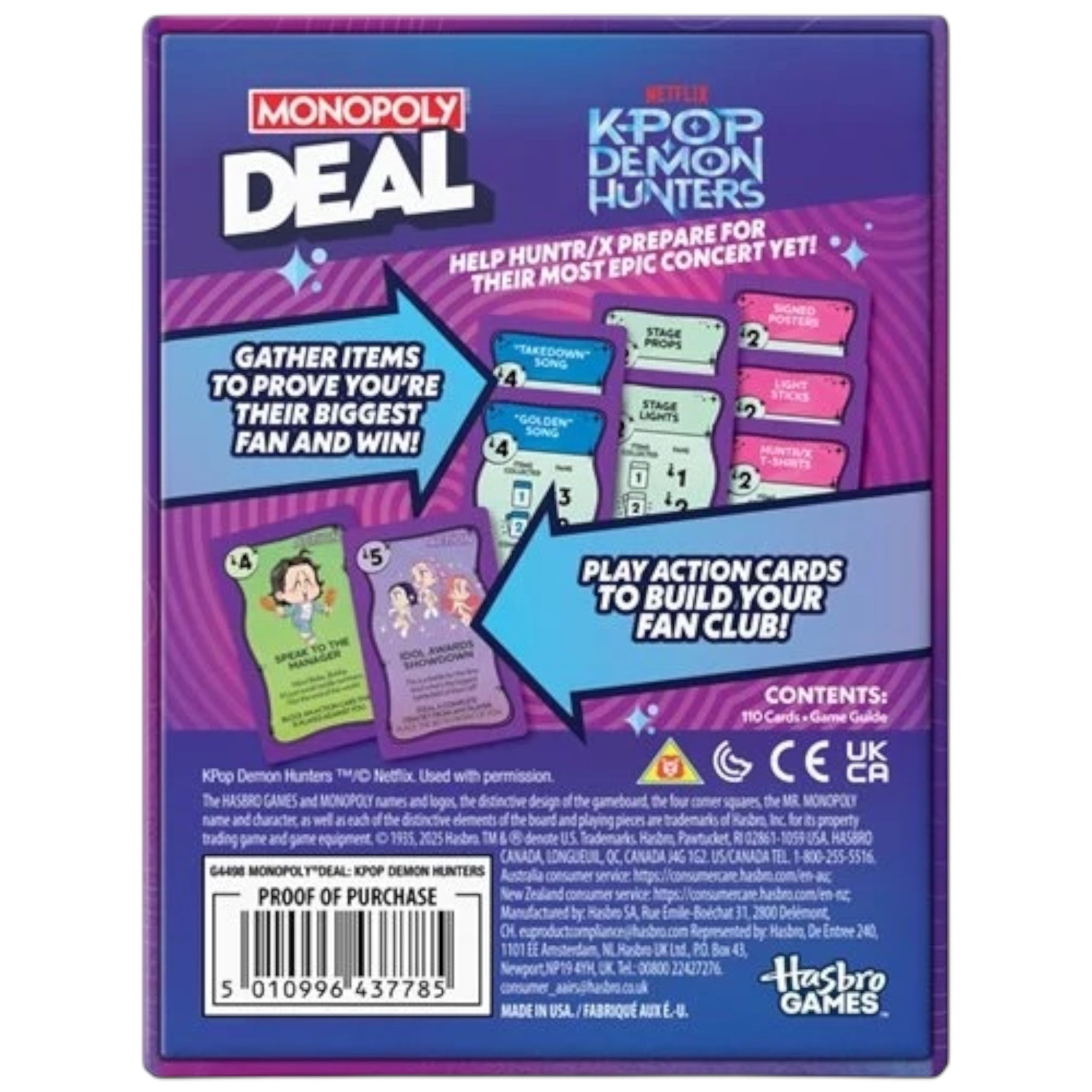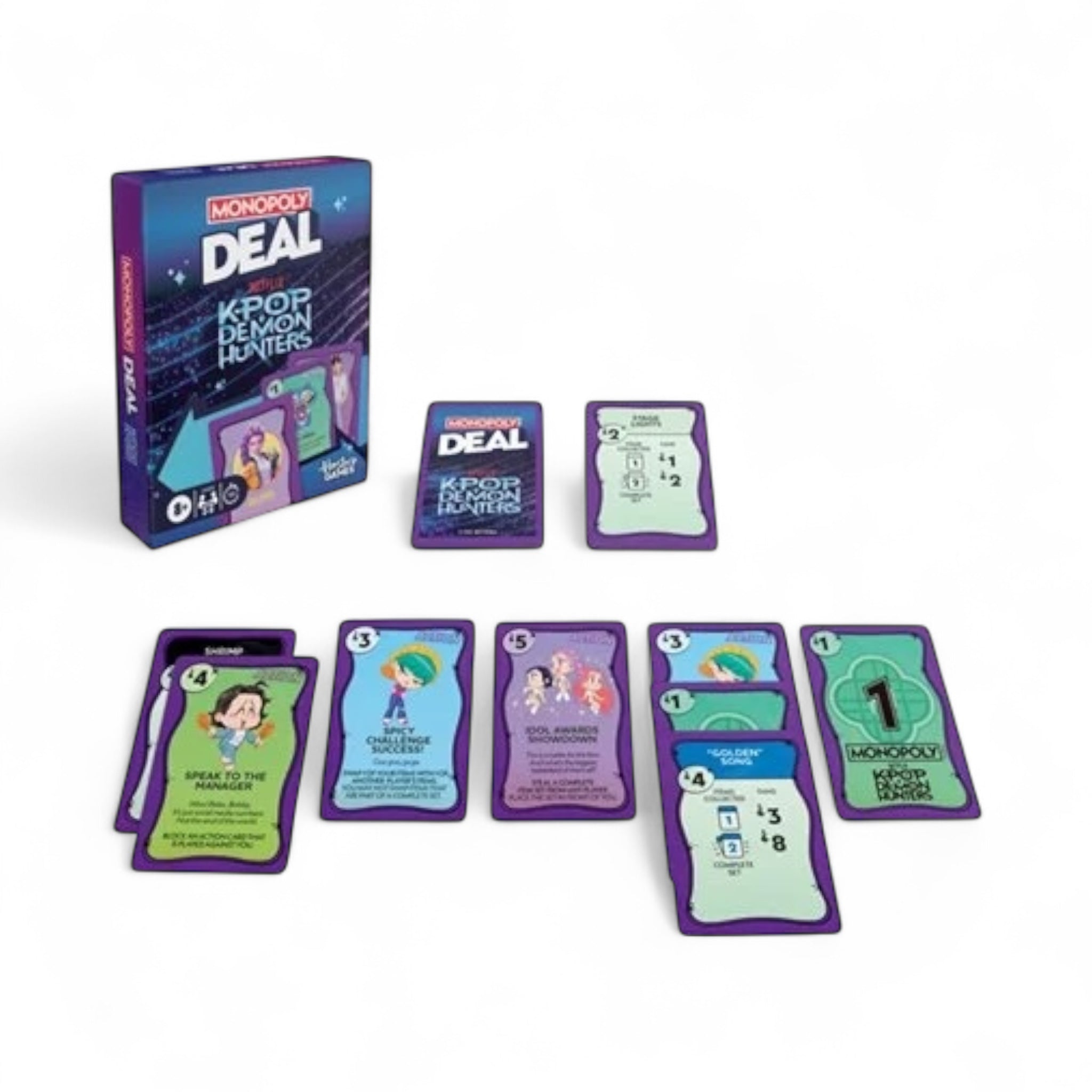 This Monopoly Deal: KPop Demon Hunters game combines the fast action of the Monopoly Deal game with characters and themes from the hit Netflix film.